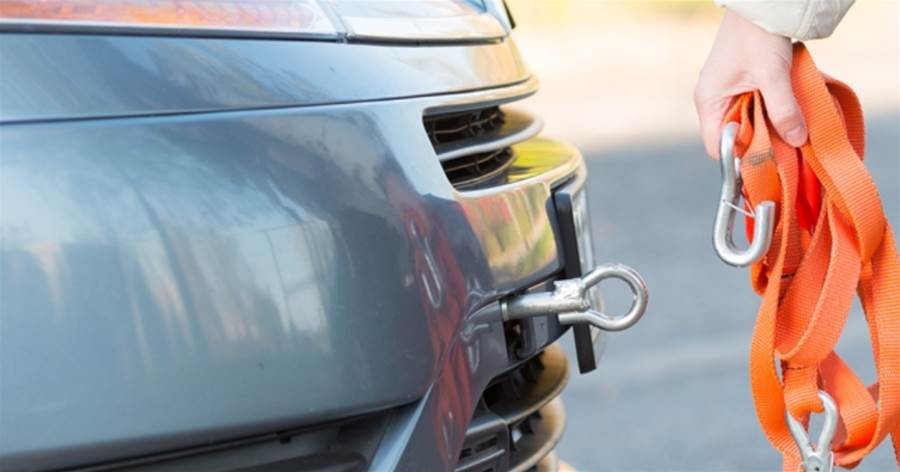 そいつの車のリアにある牽引フックと DQNショップのタイヤ陳列台をロープで結んでおいた。