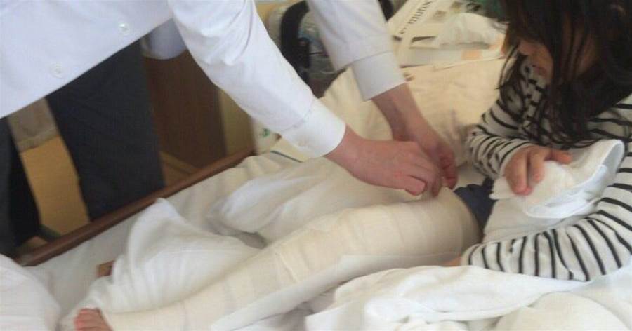 持っていたお盆のグラスが割れ、額や頬を計12針縫った
