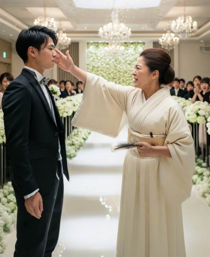 その時、花嫁の母である美枝子は、淡いピンクの着物を着て静かに座っていた。彼女の顔には、優しさと安堵が入り混じった表情が浮かんでいた。息子を見つめるその眼差しには、深い愛情が込められていた。しかし、明美の態度を見て、美枝子は少しだけ首をかしげ、静かにうなずいた。