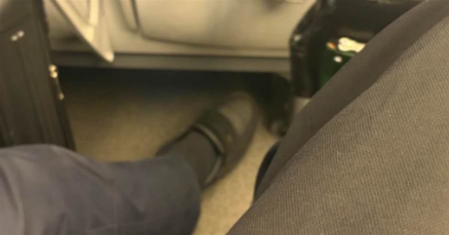 新幹線の二人席で、隣の男がわざと足を大きく広げてきた。