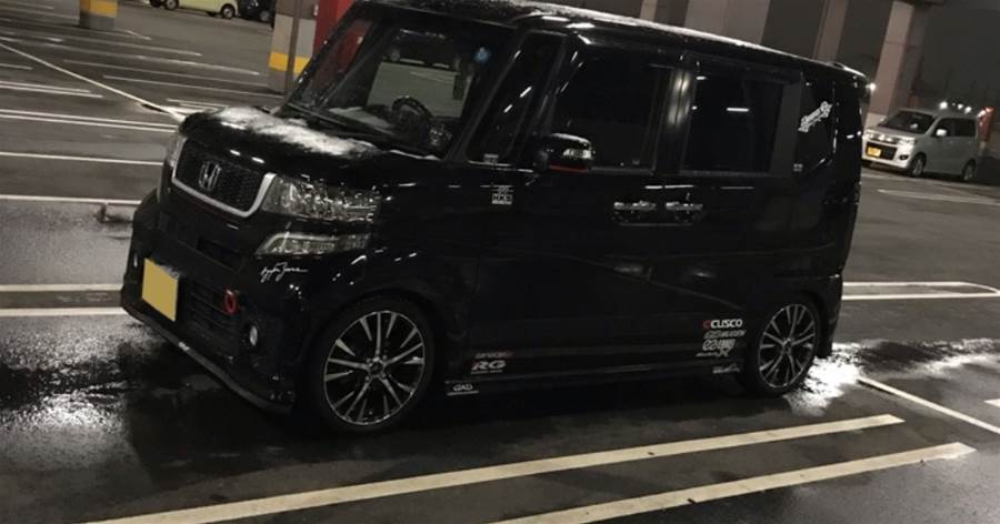 駐車場の敷地に頭だけ突っ込んで、半分くらいが交差点にはみ出した状態で駐車していて、