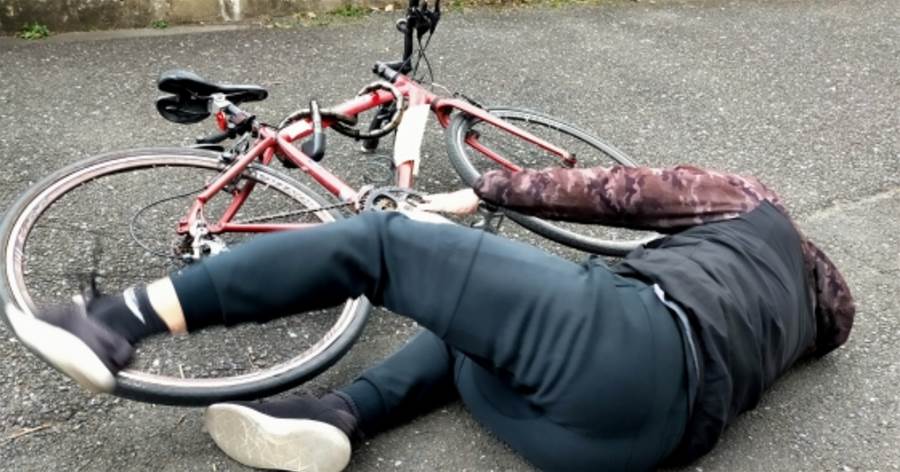 子供は自転車の前輪が曲がっていることに気づき、顔を歪ませながら地面に転がっていた。私は慌てて車を降り、子供の様子を確認した。