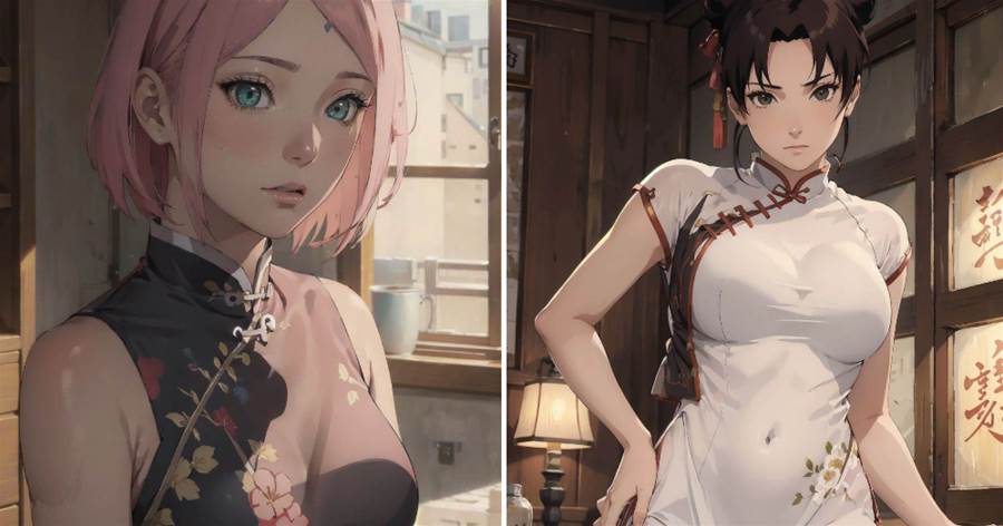 AI生成《火影女忍穿旗袍》70歲綱手變成18歲,娶到手鞠鹿丸真是好福氣